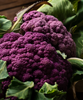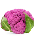 La coliflor morada es una variedad de coliflor que destaca por su vibrante color púrpura, debido a la presencia de antocianinas, los mismos antioxidantes que se encuentran en los arándanos y las uvas. Ofrece un sabor ligeramente más dulce y terroso que la coliflor blanca tradicional, manteniendo una textura crujiente cuando se cocina al dente. Es versátil en la cocina, ideal para ensaladas, salteados, asados o como acompañamiento. Además de su atractivo visual, aporta beneficios para la salud al ser rica en vitaminas C y K, fibra y antioxidantes.