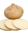 La jícama es una raíz comestible, crujiente y dulce, originaria de México y Centroamérica. Es baja en calorías y rica en fibra y vitamina C, lo que la hace una botana saludable y refrescante. Se consume cruda, a menudo con chile y limón, o en ensaladas y postres.