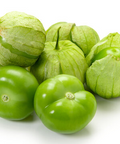 El tomate verde, también conocido como tomatillo, es una fruta de cáscara que se utiliza comúnmente en la cocina mexicana. Tiene un sabor ácido y cítrico, y se usa en salsas, guisos and tamales.